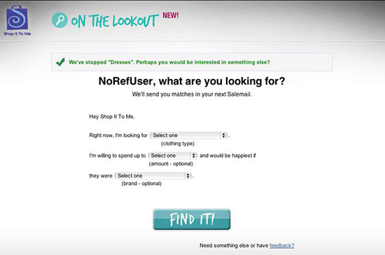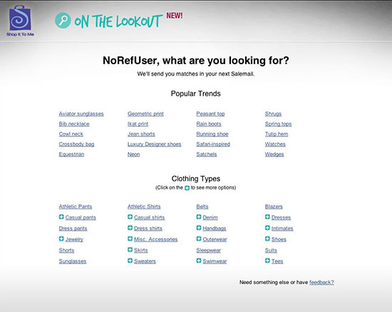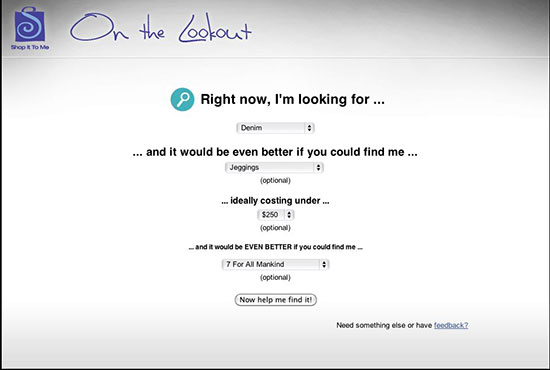 Built in Prototype JS, the Shop It To Me Search experience provides users with a specificity to formulate search parameters.